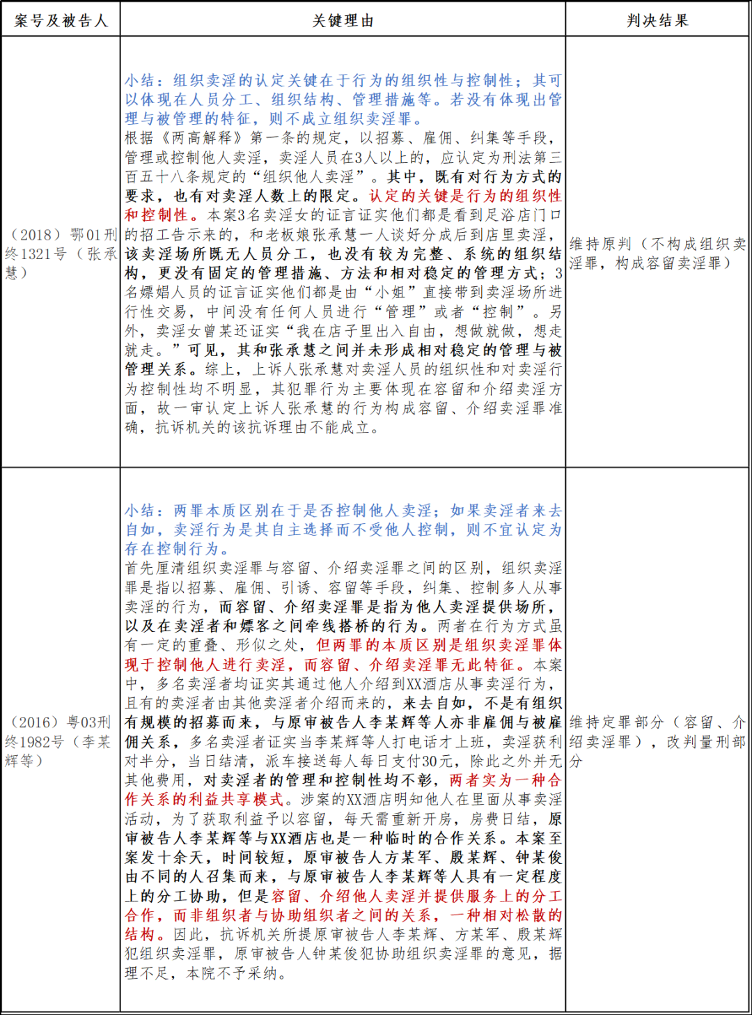 (三) 组织卖淫罪转容留卖淫罪裁判案例