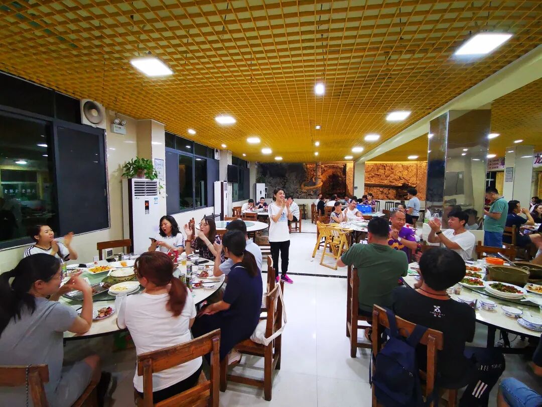 简单沐浴换装过后我们又是精神小伙,一伙人浩浩荡荡前往龙某山庄(露面我们的版面收费哈,微信支付宝均可)开启年中总结会议,顺便吃个晚饭 (o=^•ェ•)o~